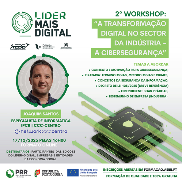 Participe no 2ºworkshop "A Transformação Digital no sector da indústria - A Cibersegurança", que se realiza no dia 17 de dezembro, pelas 16h00, em formato online!