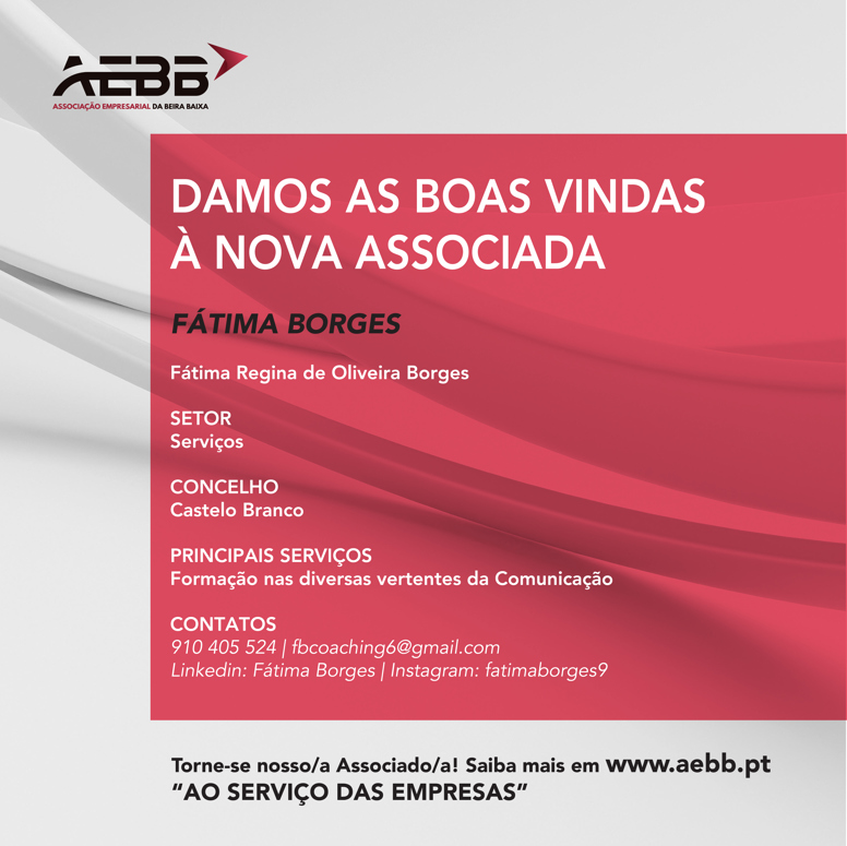 A AEBB dá as boas-vindas à nova associada: Fátima Regina de Oliveira Borges